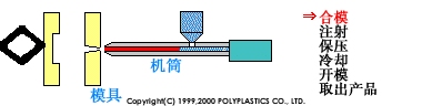1、合模 2、射出 3、保壓 4、冷卻 5、開(kāi)模 6、取出產(chǎn)品