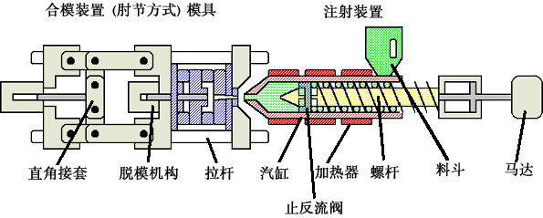 注塑成型機(jī)可區(qū)分為合模裝置與注射裝置。