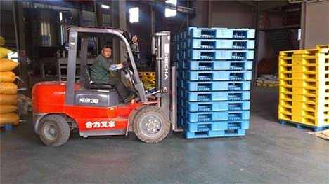 叉車是搬運(yùn)塑料托盤(pán)的常用工具,常見(jiàn)的有人力叉車(地牛)、電動(dòng)叉車,以及搬運(yùn)大型托盤(pán)用的機(jī)械叉車。在使用叉車對(duì)塑料托盤(pán)進(jìn)行搬運(yùn)的時(shí)候應(yīng)注意以下事項(xiàng):